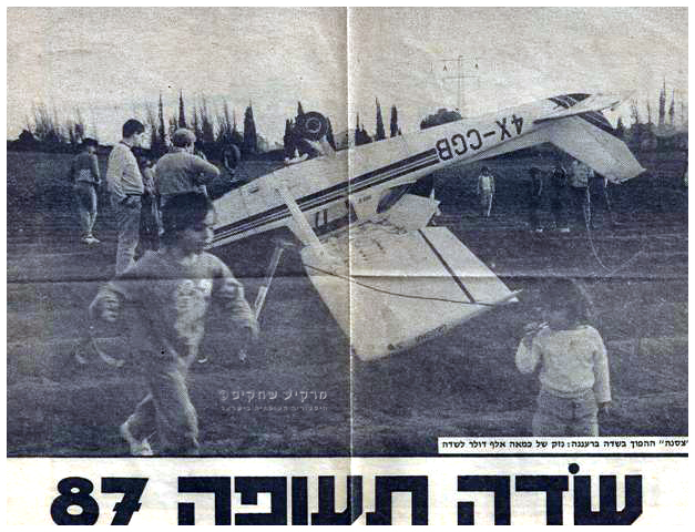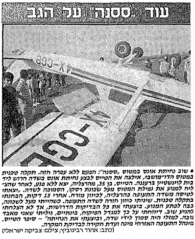 הטייס הנחית את המטוס בשדה, מתחת לכבלי המתח הגבוה שהיו מתוחים מעל מרכזו. המטוס התהפך בנחיתה והטייס יצא ממנו ללא כל פגע.עובד חברת שמירה מרעננה שסיירו בשטח דיווחו משטרה ואמבולנס.המטוס חולץ מהשדה לאחר 24 שעות והובל חזרה להרצליה לחקירת נסיבות התאונה.