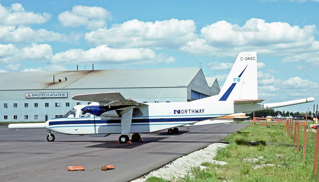 המטוס שוקם ושודרג לדגם BN2A-21 ובספטמבר 1984 נמכר לחברת התעופה הקנדית בופאלו איירווייז. לאחר מכן נמכר לחברת אלאייר, לאחר מכן לחברת נורת'ווינדס נורת'רן, לחברת הבניה ארנקו קונסטרקשן, לחברת התעופה גרונדאייר,וב-10.3.88 לחברת התעופה אנטלר אוויאיישן.