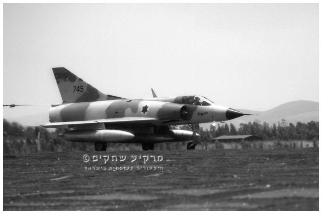 | "חזרנו שנינו מסגירת המסלול של אבו סואר, ומיד למידי לירוט. אחרי כשעה הזנקה לכיוון האון, גובה 5,000 רגל, מטוס 49, בידונים 1,300,שני שפרירים, משככי גובה וכיוון לא נכנסים, טיסה בגובה נמוך מאד, מרובעת וקופצנית. לקראת צמח רואים את בבן ןנפתלי רצים אחרי מיג 17 דרומה, כקילומטר לפניהם עוד מיג. נכנסתי עליו מעליהם. שפריר מטווח 1,000 מטר ישר מאחור, לא פגע. שפריר שני לא יצא בכלל,אחר כך התברר שניתק מהנושא…. התקרבתי לתותחים. המיג בבריחה, 500 קשר.נוסף למשככים גם מקזז גובה פועל חלקית. צריך לחץ חזק על הסטיק לשמור גובה. השיטה-להוריד אף-התהפכות. מספר נסיונות נפל לכוון, כולל צרור בכיוון גרוע, ופקטורי מתחנן שאתן לו.צודק. אמנון נכנס,נפתלי איתו בערך במבנה להתקפה, בבן מאחוריהם לאחר שהפיל את המיג שלו, אמנון משגר שפריר-לא פוגע. נפתלי משגר שפריר,לא פוגע. אמנון מתקרב לתותחים, שניים-שלושה צרורות, חתיכות עפות, המיג באדמה. חוזרים לפטרל מעל הכנרת. אמנון פונה פתאון מזרחה, לא מצליח להקים קשא איתו או עם הבקר. גובה 15,000 רגל, מבער מלא, המון פניות, פעמיים 360,אמנון זורק בידונים כשאני אחריו והם ישר אלי, ומיד צולל חזק למטה. שחררתי בידונים וקיבלתי אוסילציה לא נורמלית (איפה המשככים כשצריך אותם?) המהירות 0.95 מאך. באיזור צומת בוטמייה רואה מיג בודד נמוך בכיוון צפון מזרח, אמנון יורד אחריו, אני מעליהם, לא שומע, רק רואה. אמנון מאחוריו הרבה זמן, נמוך מאד, מהירויות 180-220,הפיכות הטיה, מידי פעם המיג פותח וסוגר מבער, הכל לא חריף. אמנון יורה מספר צרורות,חתיכות עפות והערבי טס… קרוב לדמשק טייס המיג מושך, קופץ והמטוס באדמה. פונים מערבה הביתה, פתאום אמנון שובר שמאלה ונעלם. שברי המיג נצנצו וחשב שיש מיג נוסף. אני לבד, בלי קשר, הדבימטר לא כוייל בזריקת הבידונים,רק ההפרש ידוע. 600 קשר נמוך בהתחלה עד הירדן והביתה.כאן חזיתי בנטישה של אהוד אחרי ששברי המיג שהפיל נכנסו לו למנוע. כשאמנון חוזר, מסתבר שכשירד על המיג השני שלו, היתה בעצם רביעיה,שלישיה מתחתנו ואחד קדימה.הוא ירד על הקדמי הרחוק, ולא יכול להודיע לי על השלישיה. חוזר לטייסת לקראת הצהריים, הטמפ' שלי בשיאן על ההפלות שראיתי ועל ההפלות שלא הפלתי וכאן מורידים עלי להיות מפקד טייסת תורן לחצי שני של היום." |