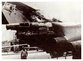 זנבו של המטוס נשרף כולו. הצוות הנחית את המטוס בשלום בבסיס נבטים. המטוס הועבר לתעשיה האוירית ושוקם במשך 3 שנים ובהשקעה של 32,000 שעות עבודה.