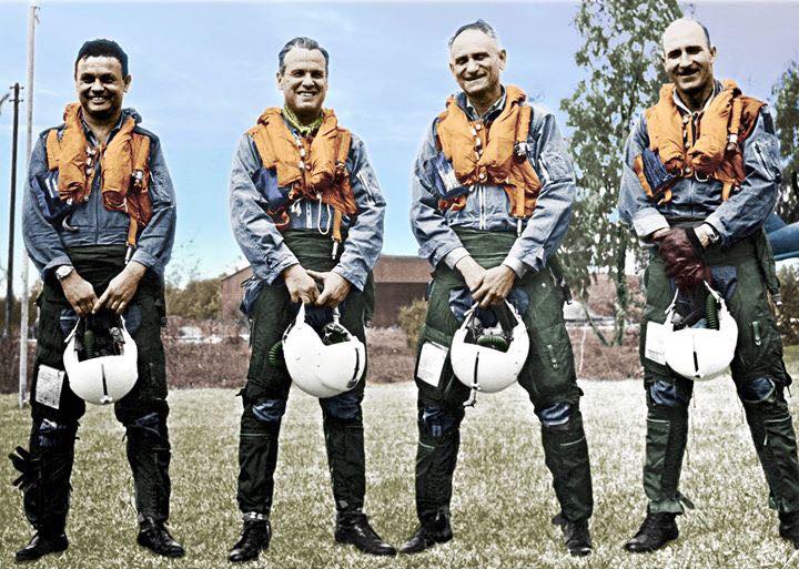 לאחר תדריך מסודר התייצבה הרביעייה לצילום על הדשא מול בניין הטייסת, כשהם בסרבלים, חליפות תאוצה (“G Suit”) והקסדות בידיהם. הצילום (במצלמה הישנה שלי, בשחור-לבן) של הרביעייה מוכר וידוע מאד. הוא פורסם במקומות רבים.