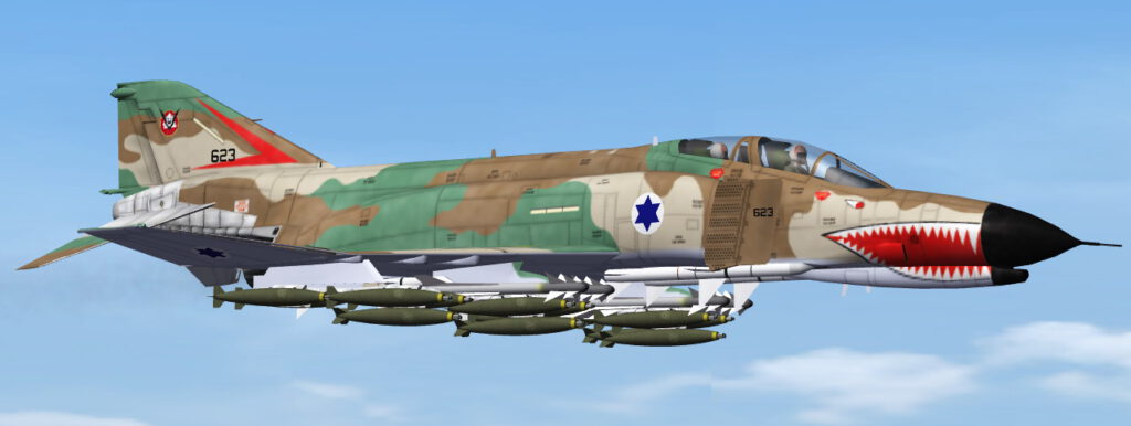 כשהגיע הזמן קיבלנו מטוסים, התלבשנו ויצאנו לטיסה. המטוסים שהוכנו עבורנו היו בקונפיגורציה יחסית פשוטה – דלק פנימי + שני בידונים מלאים, שלוש פצצות אימונים כחולות ממולאות מים. בסה"כ כשמונה טון דלק וחימוש.