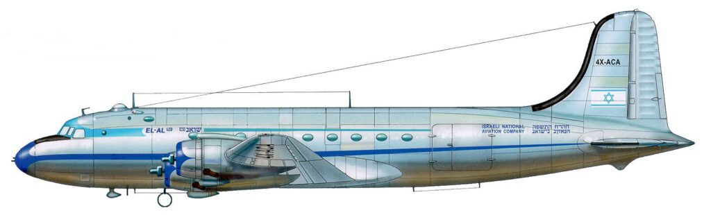 בשנות החמישים, כשאל-על הפעילה מטוסים שרכשה בארה"ב (סקיימסטר וקומנדו), אימצה לה את הנוהג האמריקאי דאז של צביעת סימני הרישום אנכית לאורך זנב המטוס. בצילום נראה קומנדו 4X-ALC בשדה-התעופה של אילת. שימו לב לסמל הקטן של ארקיע על החרטום לפני המדחף. היה זה בתקופה שארקיע חכרה מטוסי קומנדו מאל-על להטסת נוסעים לאילת, טרם רכישתם של מטוסי דקוטה יעודיים.
