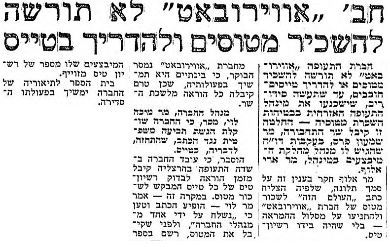 בשנת 1972 הצליח כתב של השבועון "העולם הזה" לחכור מטוס של החברה מבלי שיהיה לו רשיון טיס. בעקבות זאת החליט שר התחבורה דאז שמעון פרס, לאסור על החברה להחכיר מטוסים ולהדריך טיסה, עד שתוכיח למנהל התעופה האזרחית שנקטה אמצעי זהירות בנושא החכרת מטוסיה