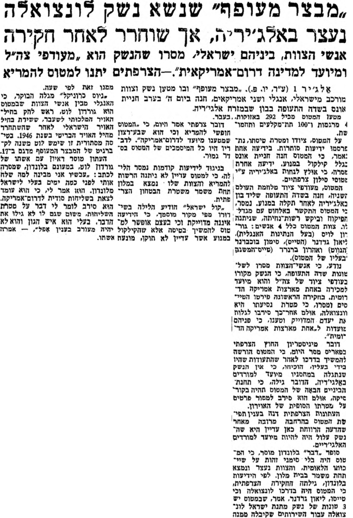 ידיעה שהופיעה בעיתון "דבר" ב-2 במרץ 1958 (מקור: אתר "עיתונות יהודית היסטורית")