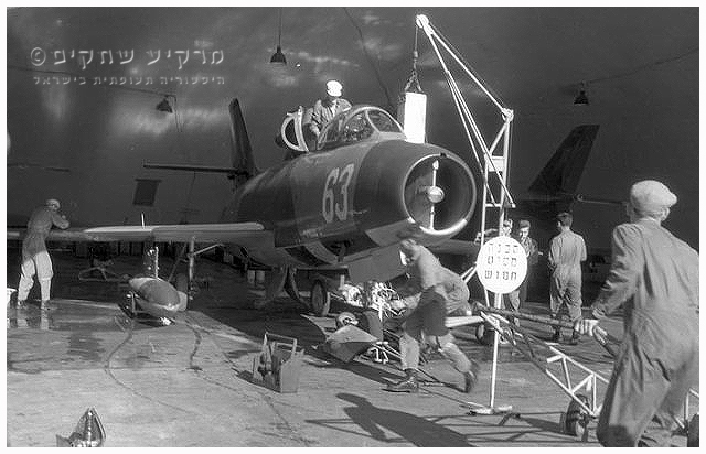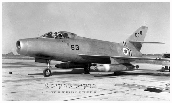 המטוס נחת בבסיס חצור והוצב בטייסת 101 עם מספר זנב 63 שנצבע על זנבו וגם על גופו. הופעל כמטוס קרב במבצע סיני, ולאחר מכן כמטוס תקיפה. מעיון בהיסטורית האחזקה שלו עולה כי ב-18 במאי 1960 אירע תקר בגלגל בנחיתה,וב-27 ביולי 1960 פגע בו  נתז במהלך תקיפה ביום קרב.