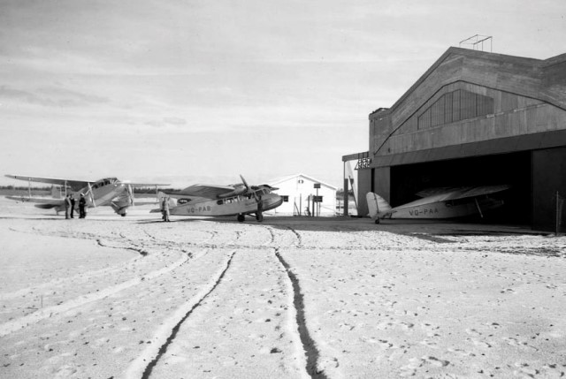 שלושת מטוסיה של חברת נתיבי אויר לארץ ישראל בפתח המוסך בשדה דב (צילום:זולטן קלוגר)